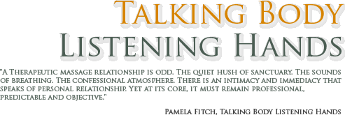 Pam Fitch introduces her book Talking Body, Listening Hands: A Guide to Professionalism, Communication and the Therapeutic Relationship.